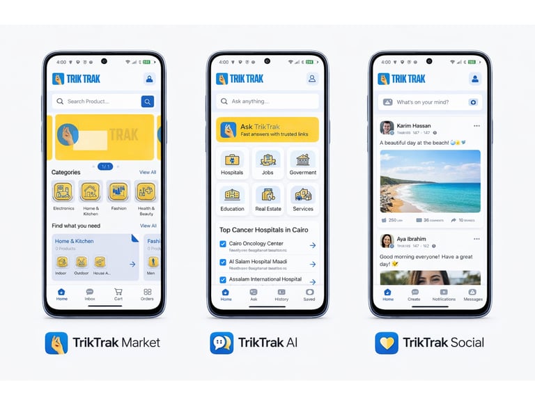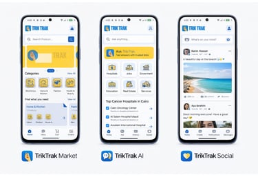 TrikTrak is a multi-layered digital ecosystem designed to combine commerce, technology, and social impact into one integrated environment.