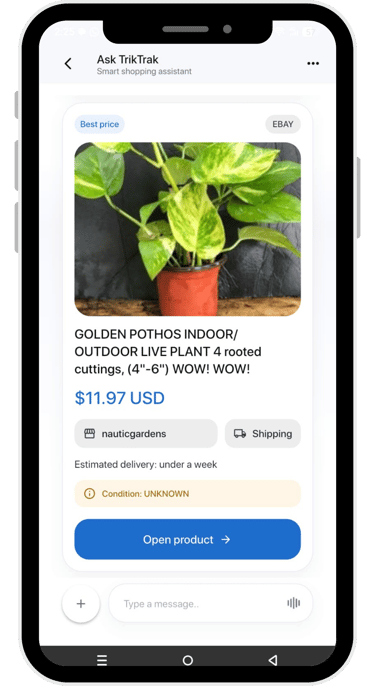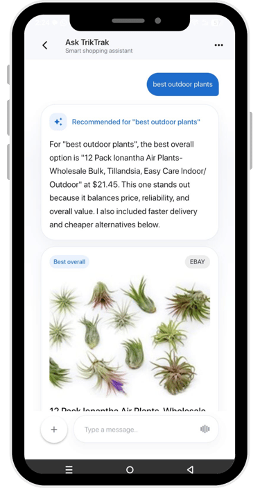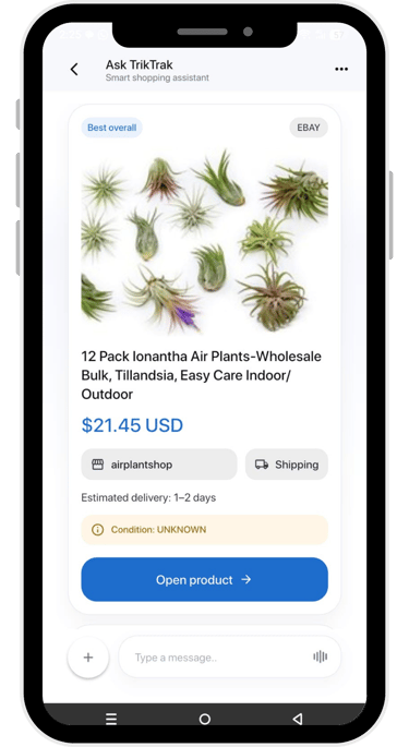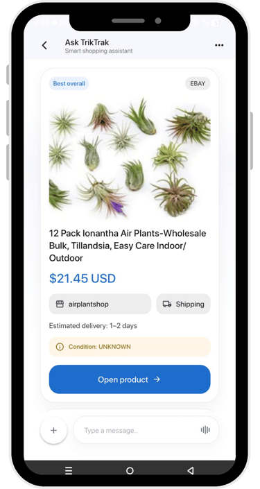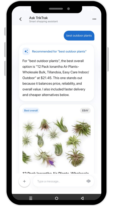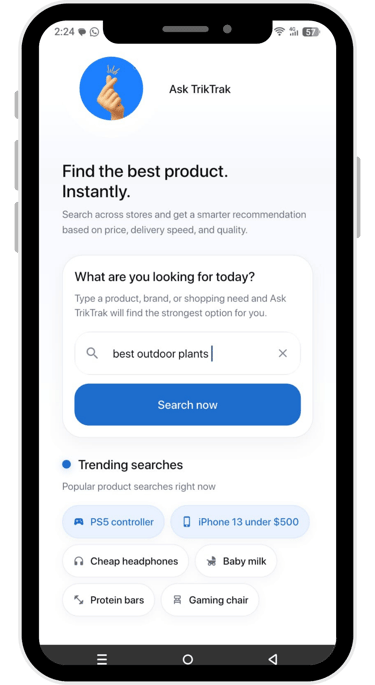 Ask TrikTrak scans multiple marketplaces in seconds, analyzing price, delivery speed, and product quality.